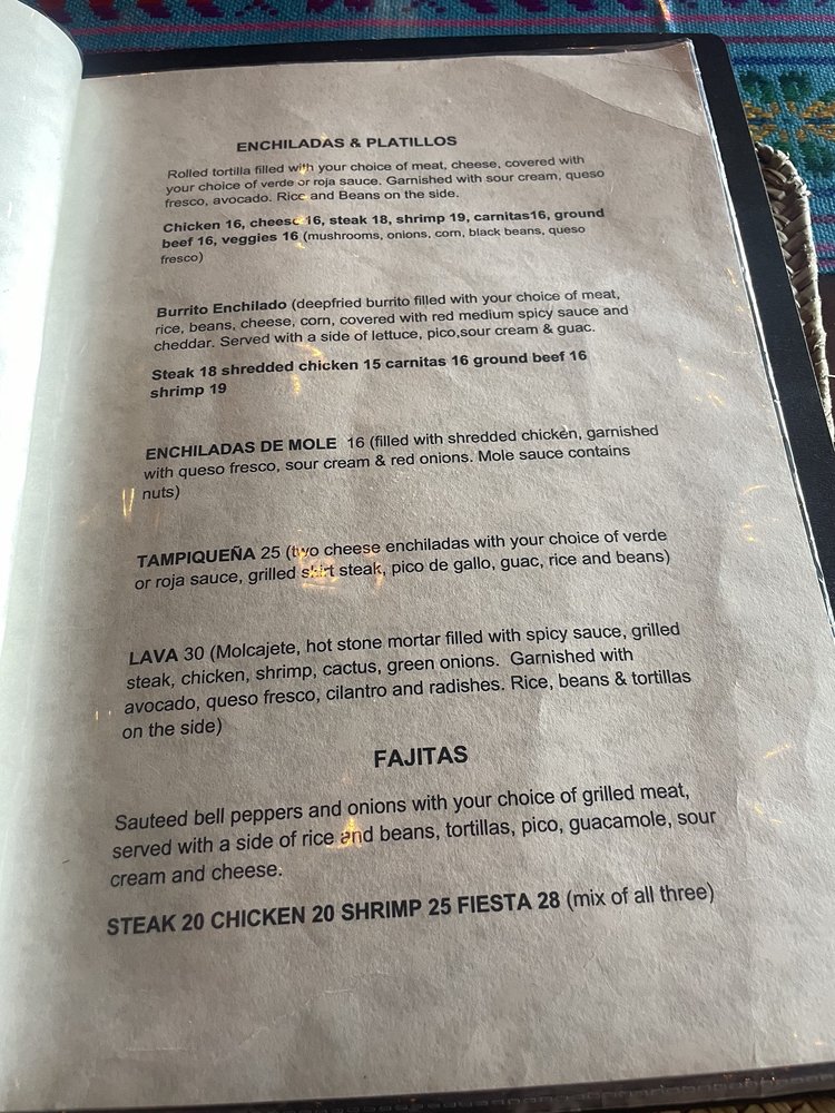 Two cheese enchiladas with your choice of verde or roja sauce, grilled skirt steak, pico de gallo, guac, rice and beans.