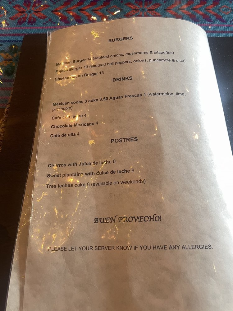 Flour tortilla, cheese, refried beans, chorizo and potatoes . Sour cream and sauce on the side. FREE SODA